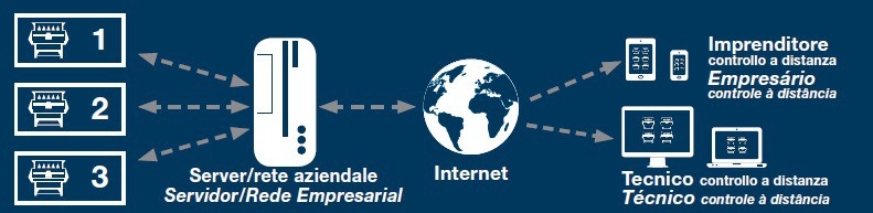 Isto permite o controle da produção a partir de qualquer ponto do mundo através da internet, transferência de programas, acesso a dados e relatórios.