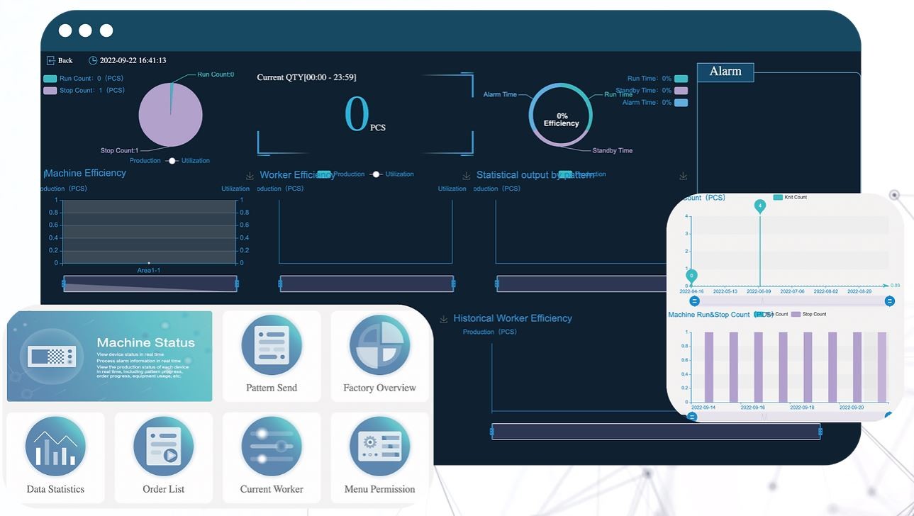 A tecnologia Mandarin é protagonista na transformação digital que está envolvendo a indústria têxtil. Os teares retilíneos eletrônicos Mandarin estão ligados em rede e o software dedicado HJManage permite a monitorização através do pc, sem a intervenção manual.